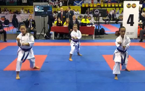 Nel kata a squadre, Sara, Sophie e Francesca si posizionanono al settimo posto.